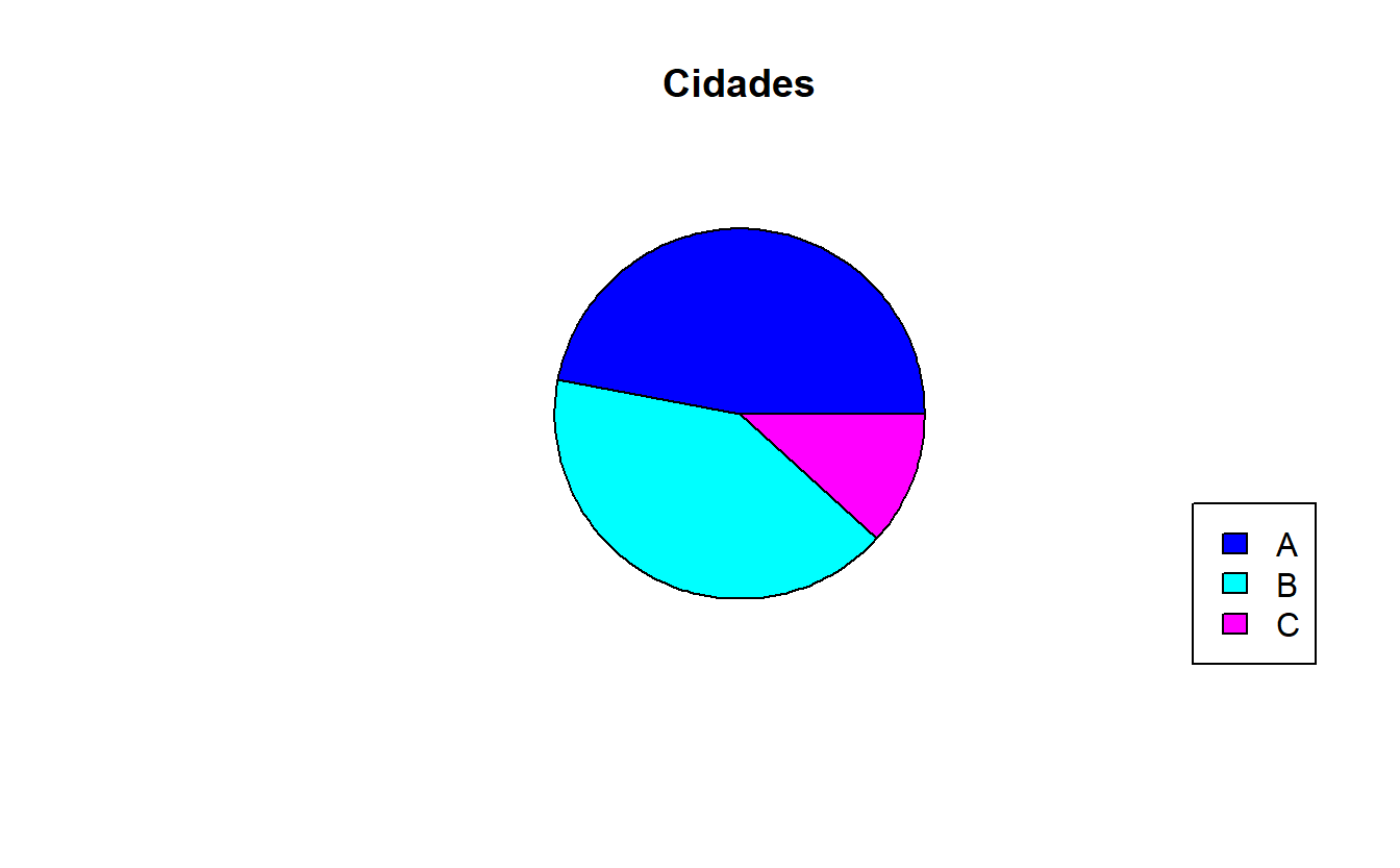 Também conhecido informalmente como “gráfico de pizza”, pode ser facilmente plotado em R através da seguinte função, juntamente com uma legenda: