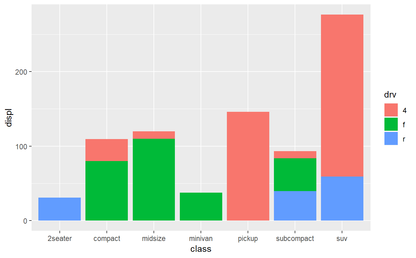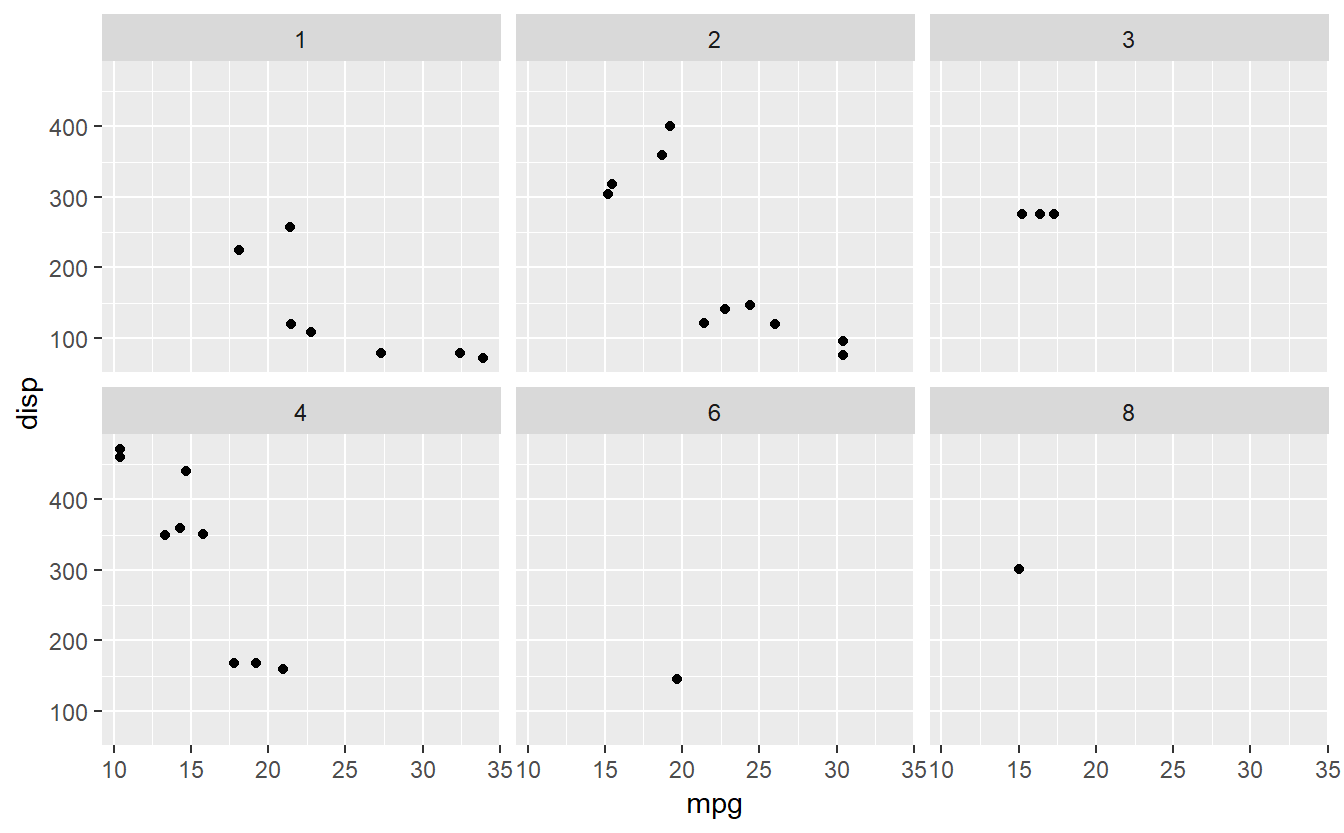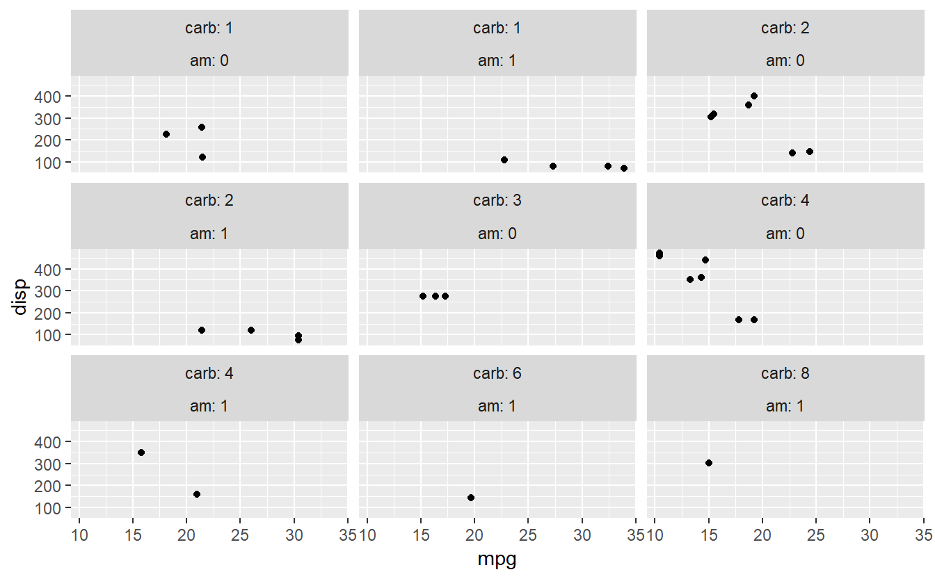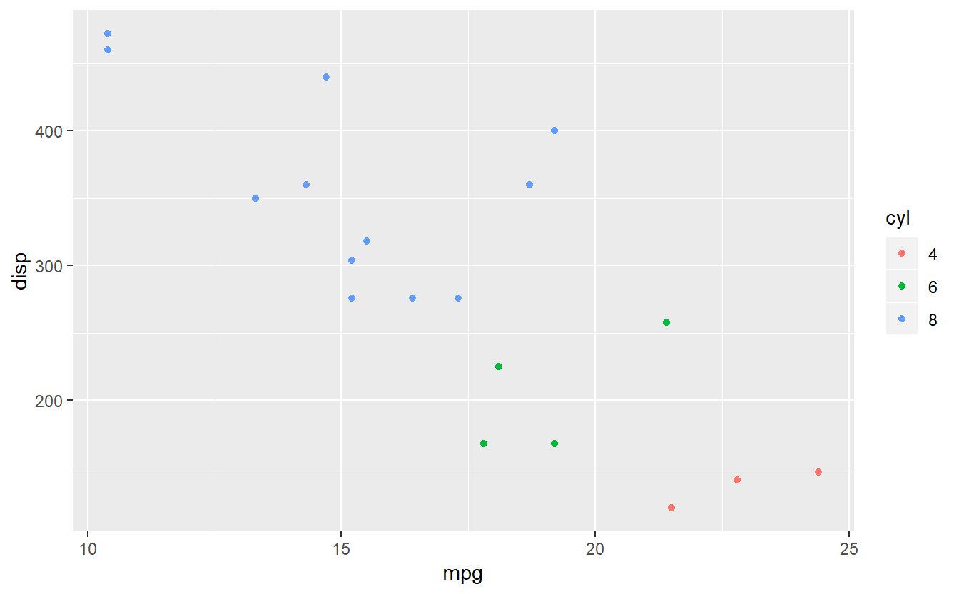 A primeira camada é responsável pelo conteúdo dos dados, enquanto que a segunda diz respeito à primeira etapa de visualização (escala) do gráfico. A terceira descreve a geometria de como os dados serão apresentados, ao passo que a quarta camada possibilita a visualização de várias facetas diferentes do mesmo dataset. A quinta camada possibilita a análise estatística, a sexta delimita as regiões relevantes das coordenadas do gráfico e, por fim, a sétima camada apresenta o tema geral do trabalho. Todas essas etapas poderão ser vistas nos exemplos seguintes.