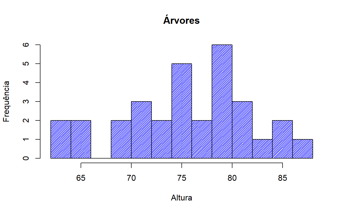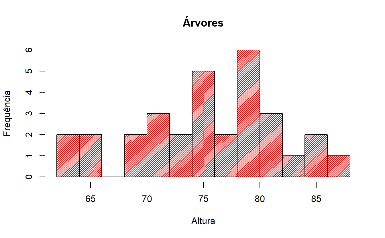 main="Árvores", ylab="Frequência",xlab="Altura")
